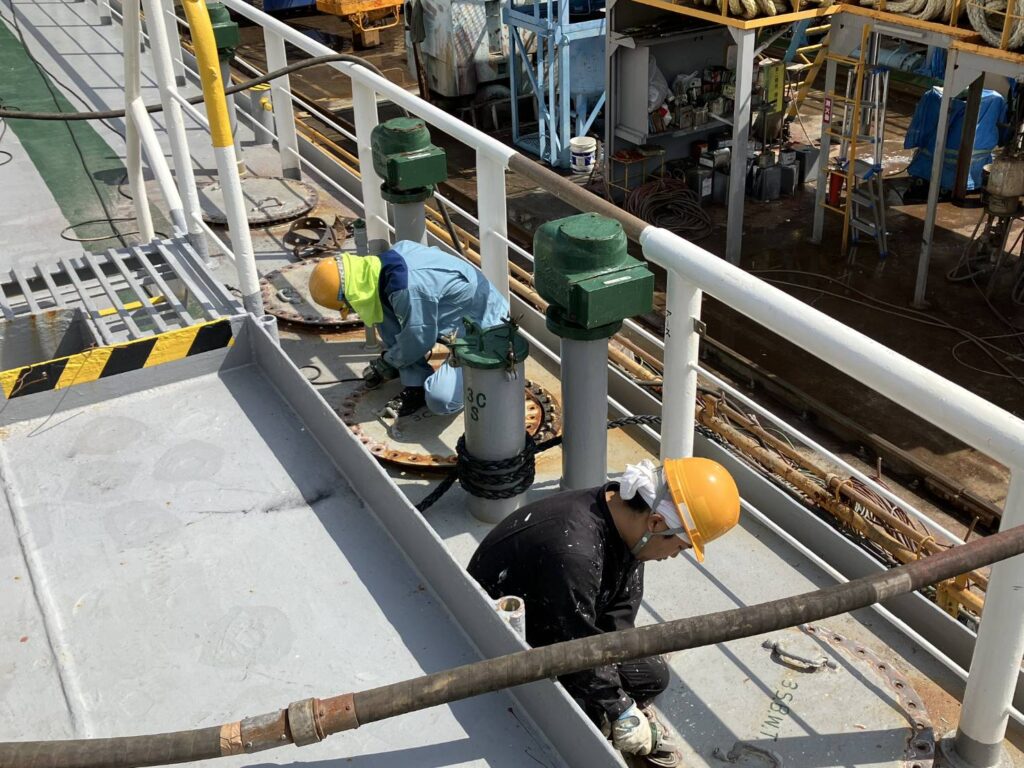 工務部も船員に交じって作業しております